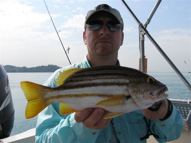 The plan originally had been to head up to Pekan, Malaysia – great high-speed jig fishing for a variety of game fish – giant trevally, spanish mackerel, golden trevally, barracuda. The weather, however, would not cooperate, and Pekan is not the kind of place to get caught in a storm – the fishing is 30+ miles out. So we chickened out and went back out in Singapore coastal waters.