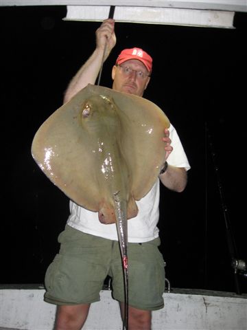 Interestingly, the stingray turned about to be something of a rare one – the recently-discovered “W-Mouth Stingray.” (Dasyatis hypostigma – look it up.)  It was also plenty large enough to be a world record. And so the night has to be put down as something of a success, even if the crew wanted to put their eyes out with a fork. And it may have been just me, but the stereo seemed to be playing an awful lot of Ricky Martin songs the rest of the trip.
