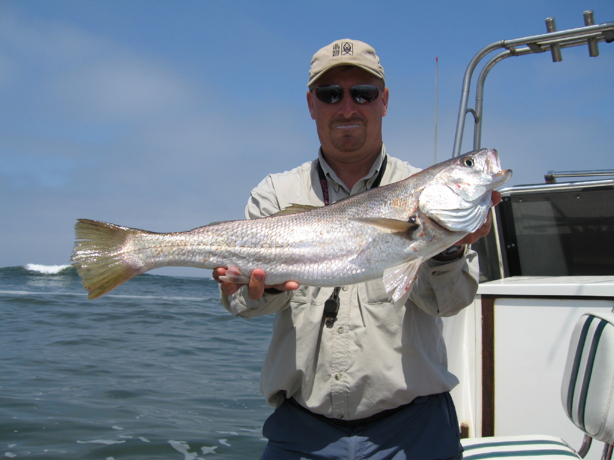 Kob – (Argyrosomus inodorus) Namibia, March 2006 – This large member of the croaker family was a welcome surprise in the surf off Swakopmund. (Just a few miles from where Angelina Jolie gave birth, although I missed that. I could swear I saw Jenifer Aniston throwing a hissy fit on the beach, but it could have been a seal with distemper.) There are several closely-related species, but some recently-published papers helped me narrow it down and put it on the list.