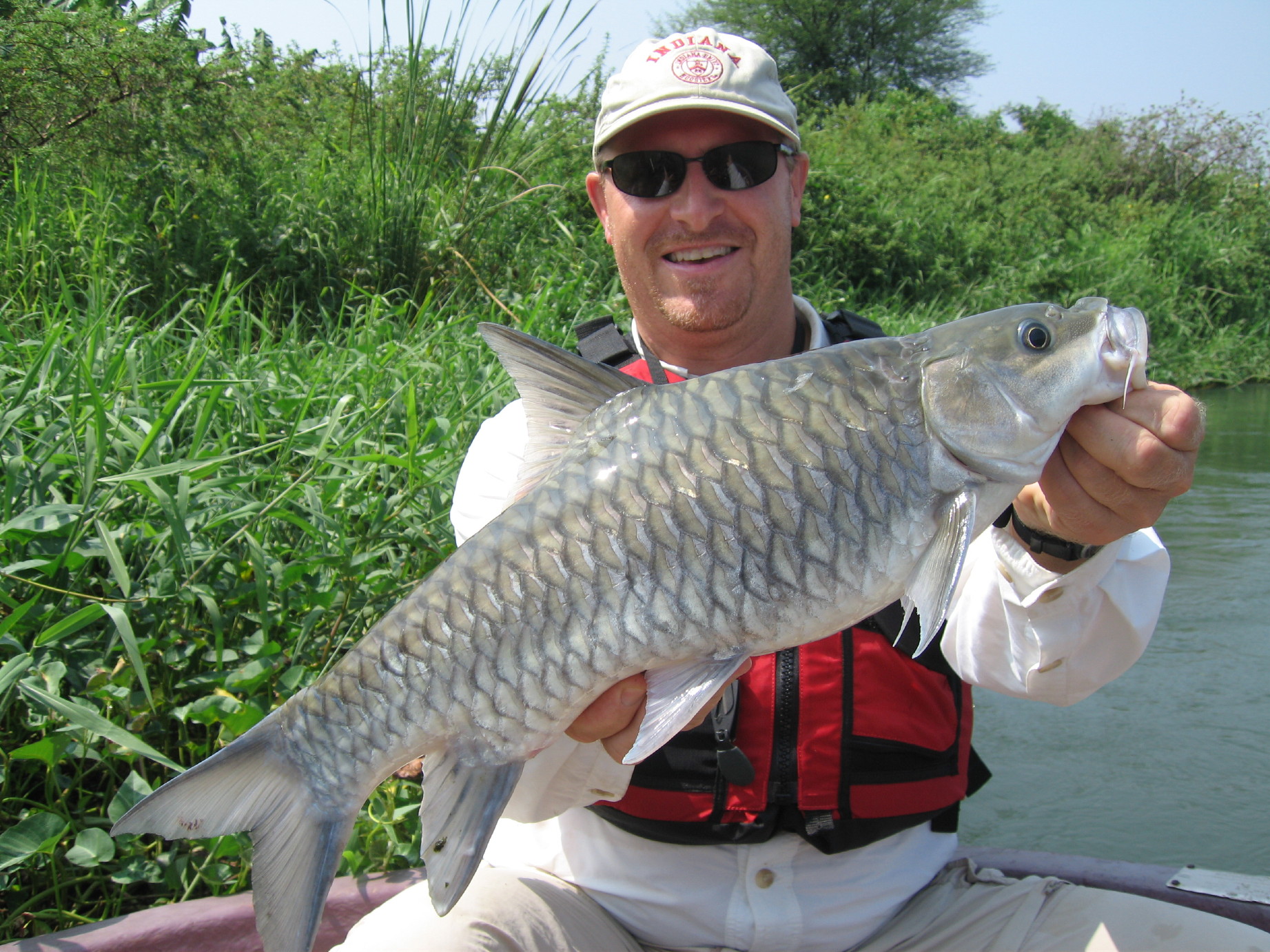 Deccan Mahseer (Tor kudree), India, November 2008 – This is one of the great gamefishes of the world, a wicked-fast predator that lives in roaring, rocky rivers. Due to the remarkable efforts of guide Bopanna Pattada, (www.mahseerangling.com), I was able to get a few of these hard-hitting beasts, despite being there in exactly the wrong time of year, all while avoiding food poisoning! Scientific references are scarce, but I was able to get help from a couple of biologists and pin it to Tor khudree.