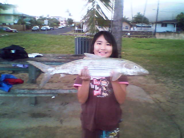 PS – Jaime Hamamoto, the 12 year-old Hawaiian fishing phenom and my arch-nemesis, has now hurt me far more than the Samoans ever will. See enclosed picture of a monstrous bonefish she caught last weekend. I will never see one this big. No one I know (except Jaime) has ever seen one this big, even in an aquarium. She sent it with this email, clearly mocking me –