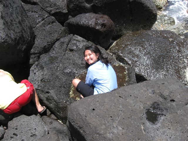 And so it was that we began our first full day with a drive out to some unpronounceable place on the North Shore. The quarry – eels. You see, Hawaii has more eel species than any other place on the planet, and there are quite a few I have yet to catch. The idea here would be to poke through some tidal rock pools with chunks of squid until an eel stuck his head out and bit, then pull him out with the rod before he has a chance to react. Of course, this means doing hand-to-hand combat with a toothy creature that is a bad combination of surprised, slippery, and violent.