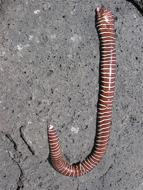 I lost the first one – an undulated moray of some 4 feet that pulled hard enough to bend the hook and escape. Probably for the best, as this species is one of the grouchier ones. But about an hour later, I was dangling a bit of squid over a small rock ledge that Jaime had discovered. A head poked out. I eased the bait away. The head poked out further. I slid the bait back about 2 feet, and out swam a beautiful zebra moray – red, with black and white stripes. He grabbed the squid and dashed for his hole, but I set the hook and swung him onto a flat rock, where an exuberant wrestling match took place. With a weight advantage of roughly 223 pounds, I was able to subdue the creature.