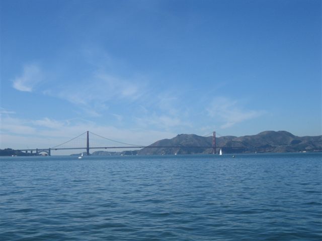 It was bright and sunny, very little breeze, and the Golden Gate was just emerging from a fog bank. This is the kind of day they advertise in travel magazines, not mentioning the fog and wind that are typical this time of year. I have always believed this false advertising is the brainchild of the San Francisco hooded sweatshirt industry, who get rich off midwesterners who come here in July expecting Los Angeles weather. I wandered out onto the sweeping curve of the breakwater, passing half a dozen fishermen heading home. “Nothing biting, man.” Alcatraz was gleaming in the morning sun, and cable car bells rang in the distance.