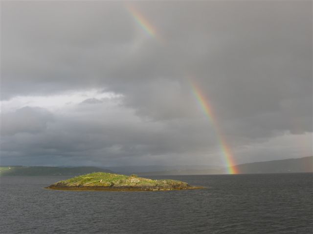 As we pulled up to the dock, I noticed that the sky was starting to clear. The wind still ripped through the harbor, but fingers of sunshine started piercing the gloom. It was the most beautiful evening of the trip, especially when a rainbow appeared off to the east. I caught a few fish off the north jetty and took in the scenery.