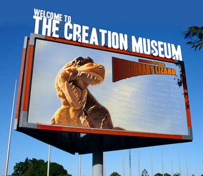 I drove south on I-275, and things looked normal enough, but as soon as I got off the Interstate, the billboards started. Religious billboards. And not the old “Bingo night at the Hebron Calvary Church” thing – we’re talking “You’ll Burn in Hell” sort of stuff that would embarrass Dante. Then I passed signs for the “Creation Museum” – apparently someone spent a lot of money to try to convince us that God put the dinosaurs here – when we all know it was Steven Spielberg.