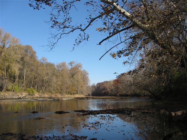 I had never seen a finer fall day – brilliant colors on the trees, bright, clean sunshine, the woods and river completely to myself. It’s strange – I almost never caught anything except poison ivy when I lived there, but on my return trips, I have done very well on smallmouth in the riffles and on bluegill and yellow bass in the lakes.  I managed a couple of beautiful, hard-fighting smallies from the pool by my favorite downed tree, so all was right with the world.