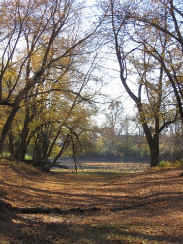 So I chased over to a very familiar part of town – the apartment complex where I lived in 1989-1990, on the northeast side of Indianapolis. (Where I had to agonize over whether I could afford $315 a month in rent.) The reason I wanted to live at this place so badly was because it was landscaped with 5 lakes and was bordered by the White River, which would leave me walking distance from fishing. I parked over by the tennis courts (where Steve Ramsey used to routinely stomp me 3 sets to none and mock my sprained ankle,) and rigged up a small jig on my trusty Shimano telescoping travel rod. In my shirtsleeves, I headed through the still-familiar paths and down to the river.