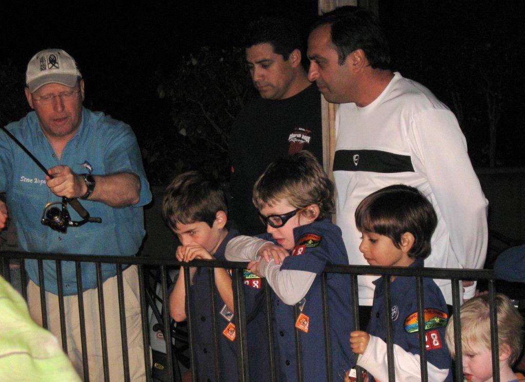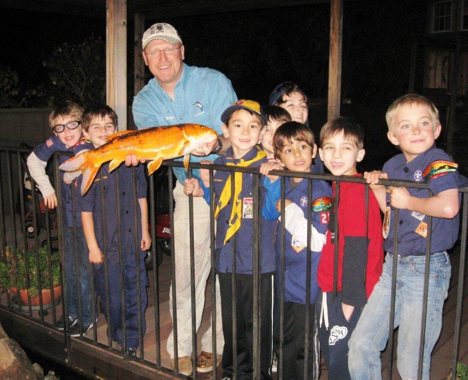 They have at least 2 boys between the ages of 6 and 8 who are Cub Scouts and have developed a keen interest in fishing. This is where I come in. The kids had pretty much gotten bored with “this is how you set up a tent” presentations. They wanted to talk about fishing. They wanted big, gory photos. They wanted stuff with teeth. And they wanted to hear about it from someone on their basic level of maturity. So it turns out I had been volunteered to make a presentation on fishing to Cub Scout Pack 28, Den 8, of Burlingame, California. Marta and Wendy predicted that I would be able to keep the group’s attention for between 8 and 14 minutes. I felt that I could keep them going for a couple of hours. And for the record, I was right.