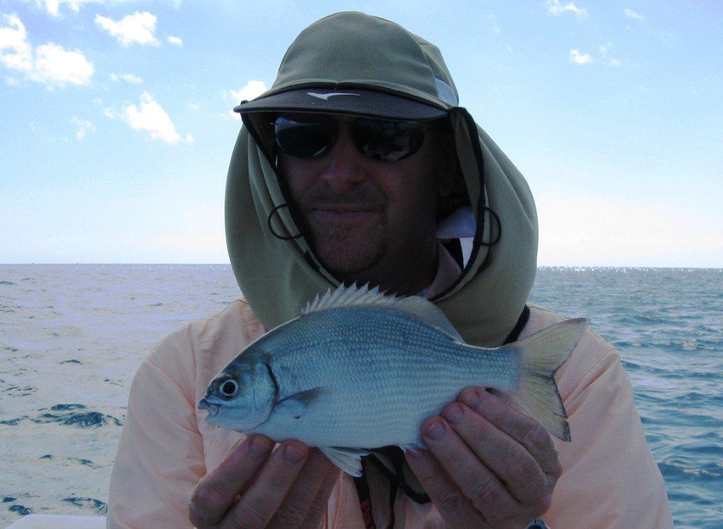 We ran out on the ocean side for a couple of hours to poke around the coral patches and try to get a couple of tropical oddities. Unfortunately, the Grunts were thick and aggressive (like me), and we couldn’t get to the reef weird stuff. We did get a couple of nice Porgies and some Snappers, and I did catch one Chub, a vegetarian reef pest that has a nasty habit of spraying poop everywhere. There is a story from May of 2008 that involves Spellman, a new yellow Columbia flats shirt, and a big, dyspeptic Chub with excellent aim. But I’ll skip that for now. (We all know how that one ends, don’t we? Say it with me … “Spellman stood there, stunned and covered in …” (For more on Spellman, see http://2000fish.com/2010/09/25/the-cottonwood-death-march/.)