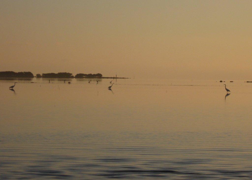 Mornings in the Keys are special. It is still cool before what usually becomes tropical heat; it is still quiet before the channels get filled with boats roaring off to the back country or offshore. The flats are full of wading birds in the still dawn, searching out small, rare fish that I have never caught. Looking out the “back door” of my houseboat was like stepping into a postcard. But stepping out the back door would have been stepping into 5 feet of water, so I didn’t do that, especially as the place is absolutely full of sharks.