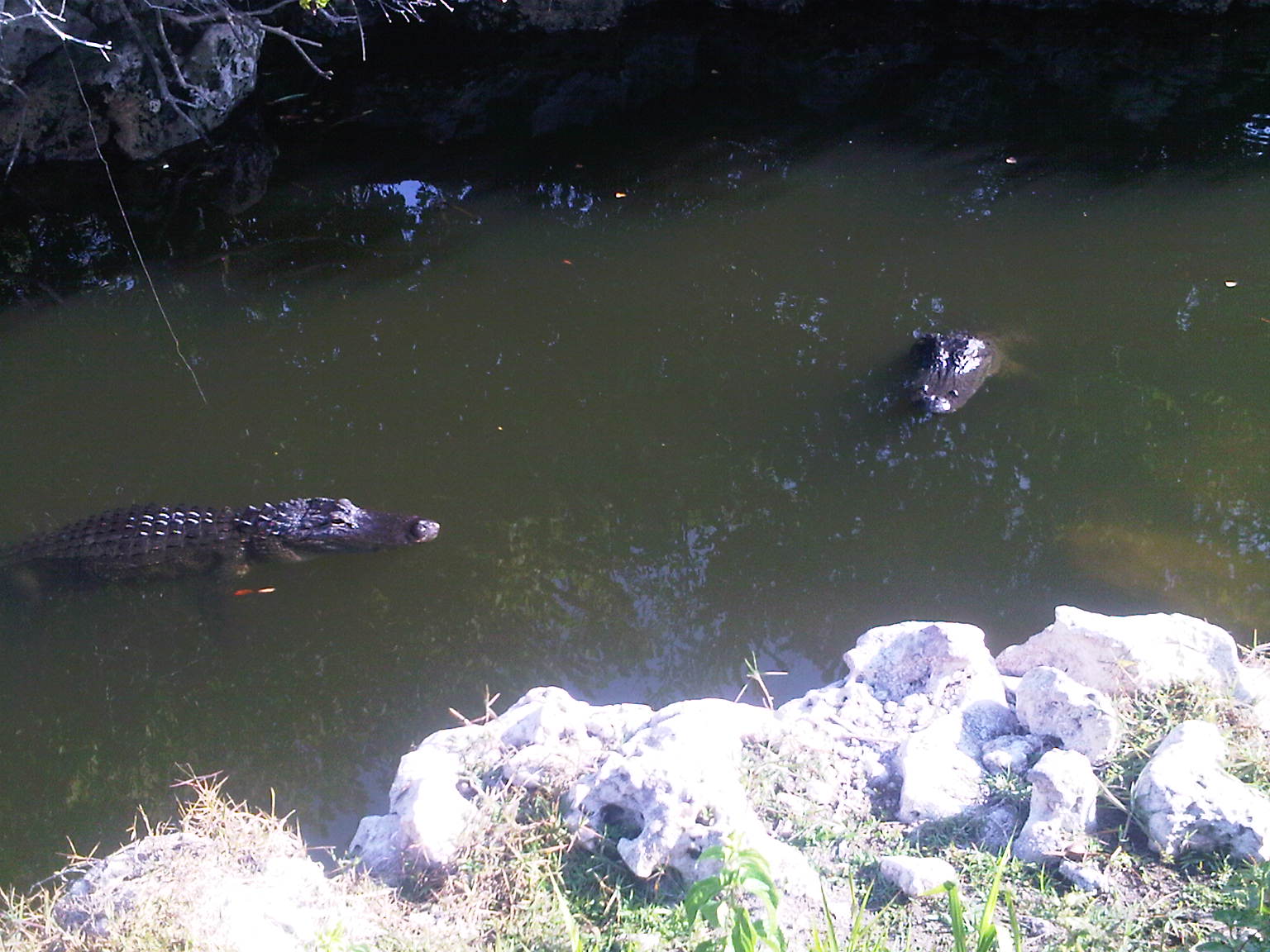 Our next target was the Walking Catfish, a creature that can only be described as bizarre, even by my low standards. Able to gulp air and walk on their pectoral spines to the next pond when things get too dry, these were transplanted from Asia at some point and are now happily residing throughout south Florida. We were on the edge of a creek, everything dead still while we watched for alligators, when all of a sudden there were a hundred little splashes as a school of these curious little beasts shot up for air, or to flip me off, or whatever it is they do when they frolic on the surface. And then, just as suddenly, they were gone. And no matter how many times I threw my bait in the middle of this frenzy, I went biteless. It brought back awful memories of the Oman tuna incident. See http://2000fish.com/2011/02/21/1001-arabian-bites/