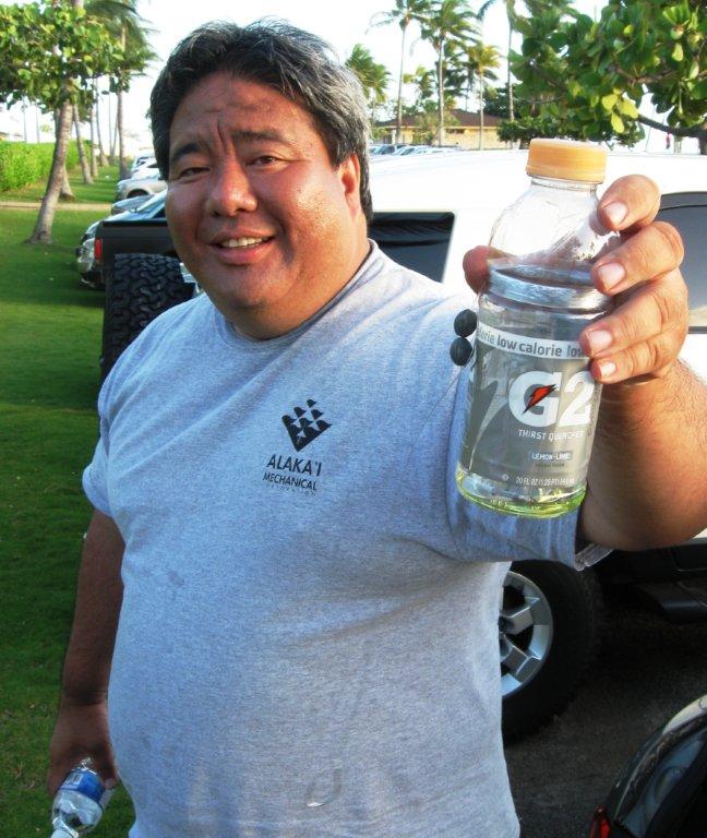 We drove to the west side of the island and onto the property of an exclusive resort. This exclusive resort has three private swimming lagoons. These lagoons, which are private, apparently contain a population of bonefish, but there is the issue that they are private. Well, I was not going to sit on my hands while corporate mainlanders stomp on the rights of native Hawaiians! So we carefully made handlines out of the bottles with 60 pound leader and squid baits, waded into the water, and, as subtly as possible, swam the baits out 15 yards or so, then sat there and waited for bites. Unfortunately, the curse was not overcome by our cleverness, but I still felt like we had struck a blow for freedom. King Kamehameha (literally “Lord of the Vowels’) would have been proud, even more so if I had spelled his name correctly.