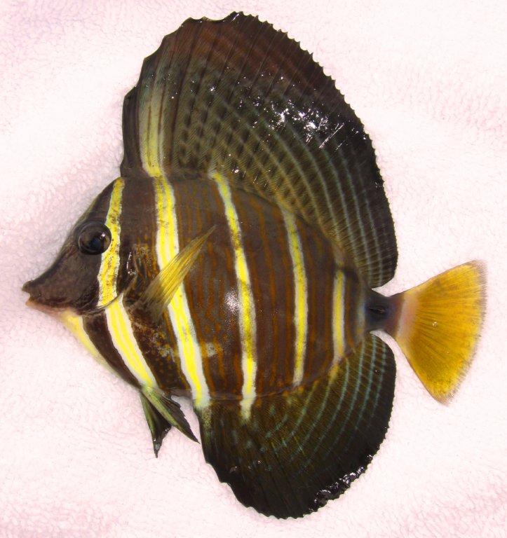 The Eyestripe Surgeonfish, moments before he was safely returned to the water.