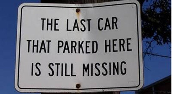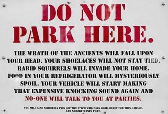 It’s amazing what you discover when you Google “Funny no parking sign.” Of course, as search engines are incredibly random, I also discovered, among other things, that Leonard Nimoy released 5 music albums. Judging by http://www.youtube.com/watch?v=XC73PHdQX04&feature=related, it is probably best that we remember him as an actor.