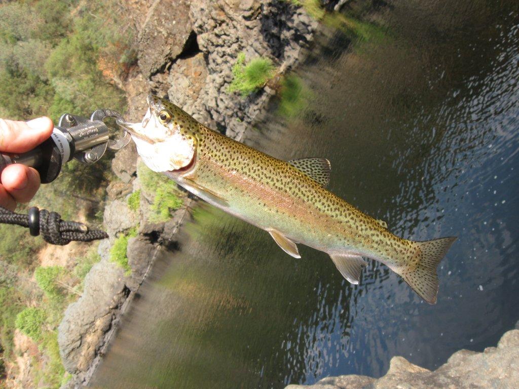 I tied on a different lure and kept going. About 10 minutes later, I got a smaller hit and started battling something from the end of the pool. It came off. I then lost another one. These couldn’t all be trout, right? Right?