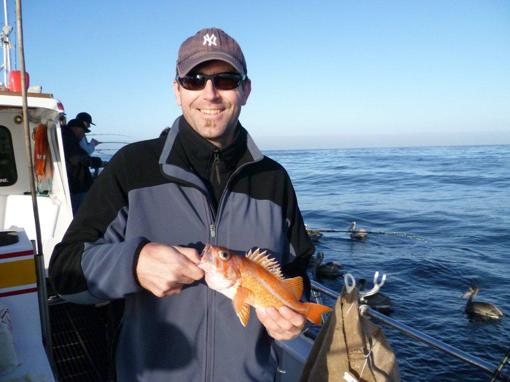 Stefan with a nice Canary Rock Cod early in the day, before it got really rough.