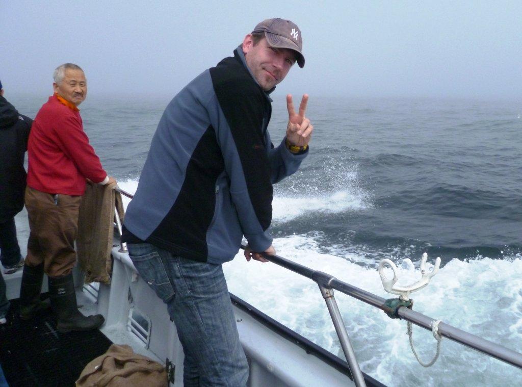 In a magnificently German way, he faced the issue head-on. “Steve – I am going to be sick now. Do you have your camera ready?” With that, he strode to the rail. He barfed thoroughly but bravely and with great dignity, a tough thing to do when you’re making a noise like someone gargling Frosted Flakes.