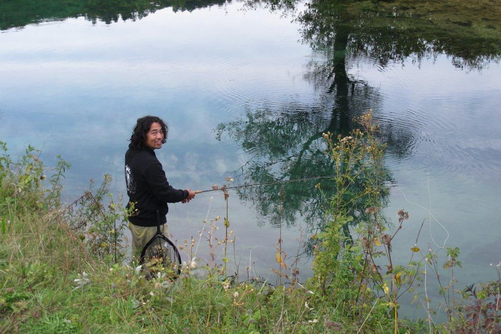 A European Grayling, caught on the float rod while Amir conveniently looked the other way.