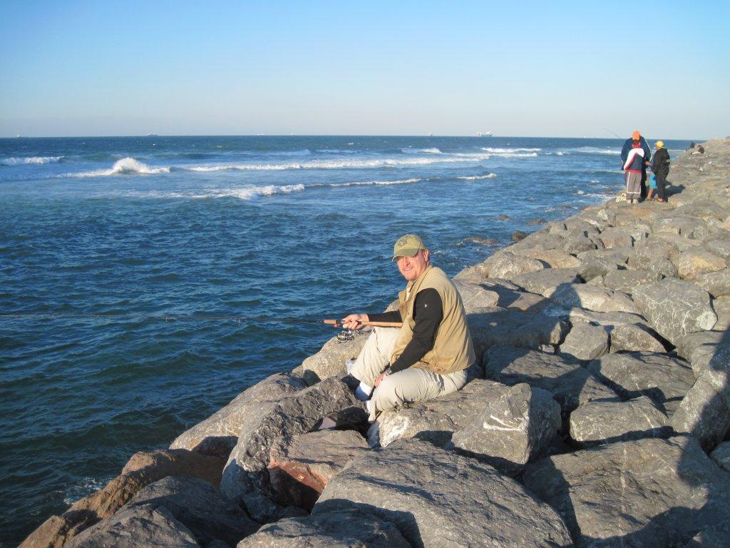 Despite my protestations that I would look at some of the cultural stuff, I pretty much got to the hotel, rigged the rods, and headed for the waterfront. My companion was understanding and accepted the venture as a cultural experience. We wandered the crowded streets, which were filled with vendors of every description, especially if the description is “food I won’t eat.” The locals were very friendly. We communicated a bit in my rudimentary French, enough for me to determine that they did in fact catch some fish here. My companion also knows a bit of Arabic, and I kept picking out the word “samak,” which would make sense, as this means “fish.” The ocean views were beautiful, especially as we approached the mammoth Mohammed V Mosque.