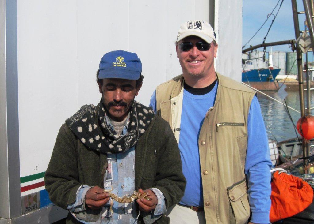 Steve and a local fisherman, Mahmoud. He is pulling apart a large, well-aged prawn to use for bait. I haven’t smelled anything that bad since Jaime Hamamoto put the dead crab in my tackle box. (http://2000fish.com/2010/06/21/the-countdown-to-1000-the-worst-little-girl-in-the-world/)