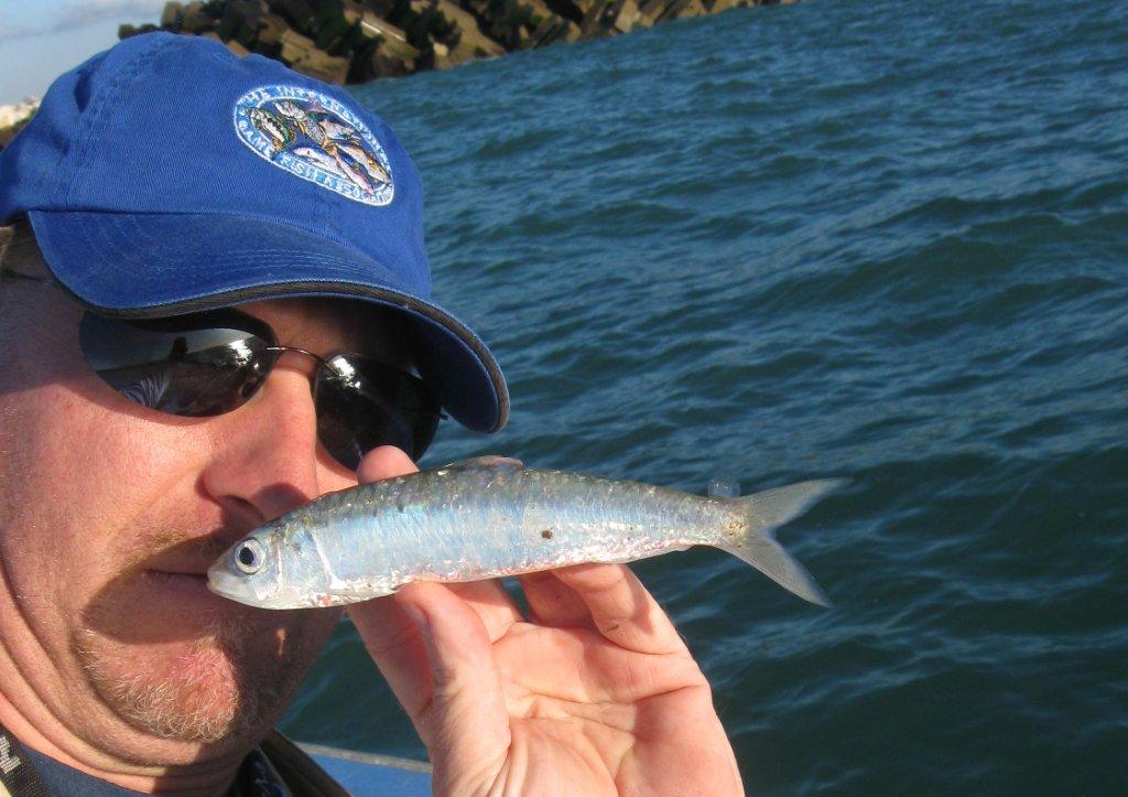 But that Weever and a small Seabream were pretty much all I had to show for the day, until we drifted past the harbor breakwater and I tossed a Sabiki that came back loaded with silvery Sardine-like creatures that turned out to be European Sardines. A species! A species! The day was a success after all.