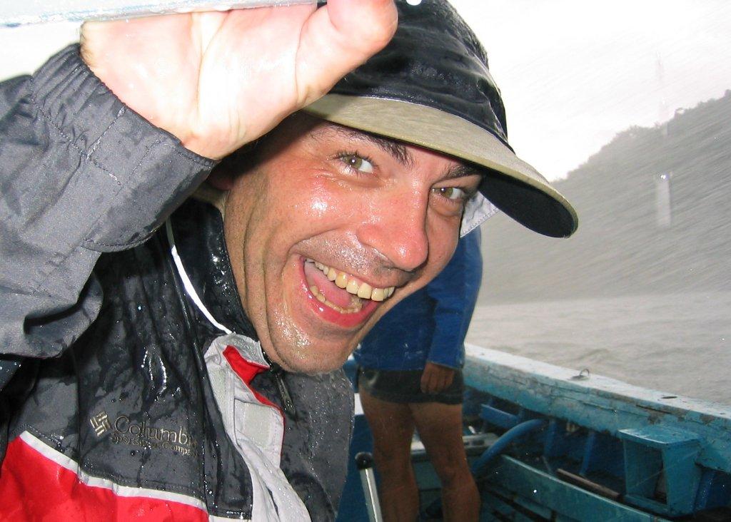 Gerardo Martinez, fishing in the driving rain. Rio de Janeiro, November 2002.