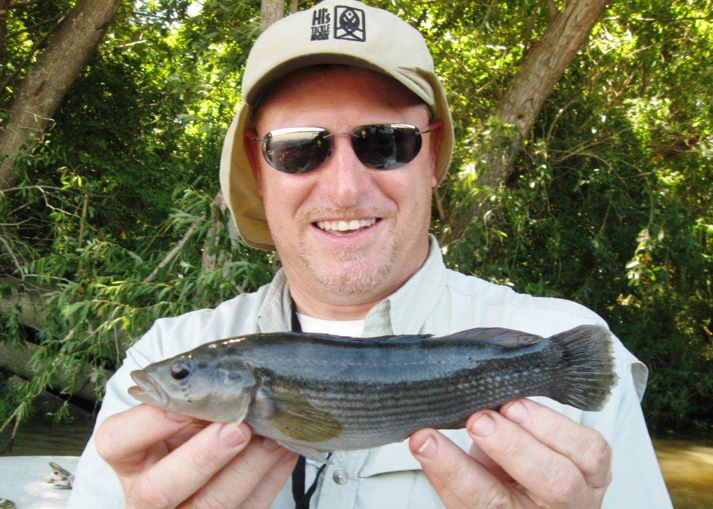 Toward the end of the day, in the shadow of an abandoned barge, I got a spirited bite and managed to reel in an attractive small fish. My demented brain immediately linked it to two species I caught 10 years ago in Brazil, which tells me I spend far too much time reading fish books. I remember my mother asking “Why couldn’t you read Playboy like normal teenagers?”