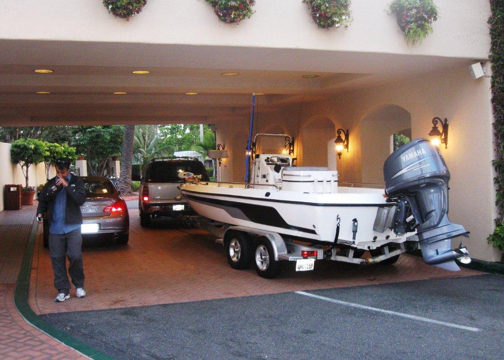 The second day, I brought a friend out to fish with me – Cristiano Bernarde – the guy I got in trouble with his HOA and his local environmental mental – see http://2000fish.com/2012/01/29/the-cristiano-bernarde-legal-defense-fund/. Cris and his wife were passing through Los Angeles and he arranged to stop in for a day on the water. The day had a difficult start when it turned out that the dropoff area at the Hyatt was too narrow for Ben to pull his boat through cleanly.