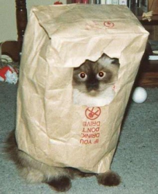 The cat getting out of the bag. You just know the cat got even with whoever took this photo.