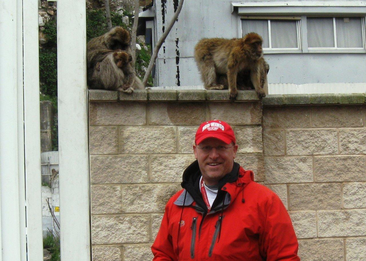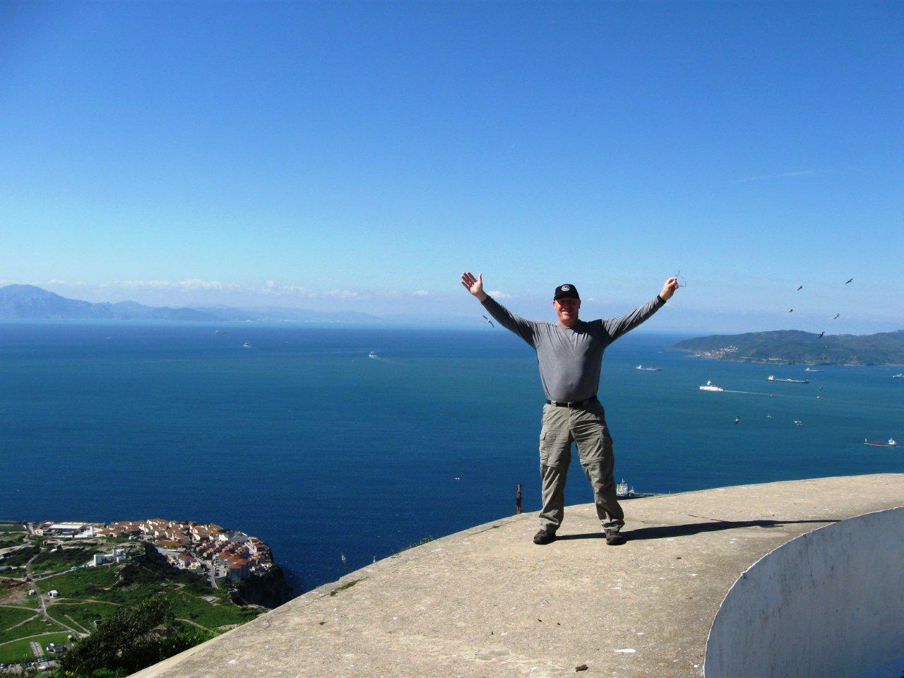 Bottom left – Gibraltar. Upper left – Morocco. Upper right – Spain. Center – guy who should have untucked his shirt.