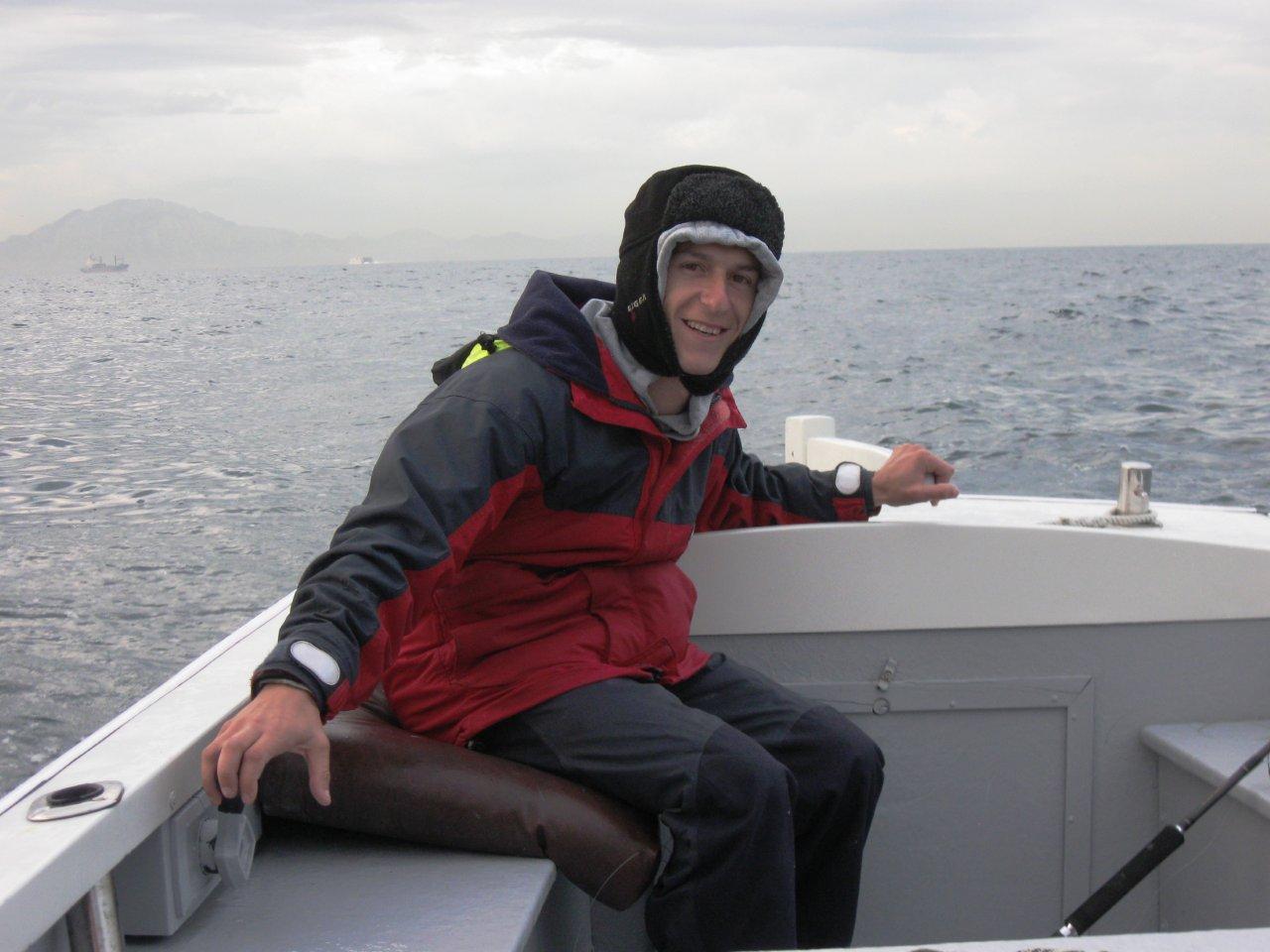 Because Gibraltar has 28,000 inhabitants but only 14 legal parking places, none of which are near the marina, Lee picked me up on a scooter. I was not prepared for this, as I am a large person and was carrying gear. Lee sorted it all out and we made the very quick ride over to the harbor. Once we launched, the water was positively nasty until we got to the east side of the rock, which was protected from the wind and relatively calm.