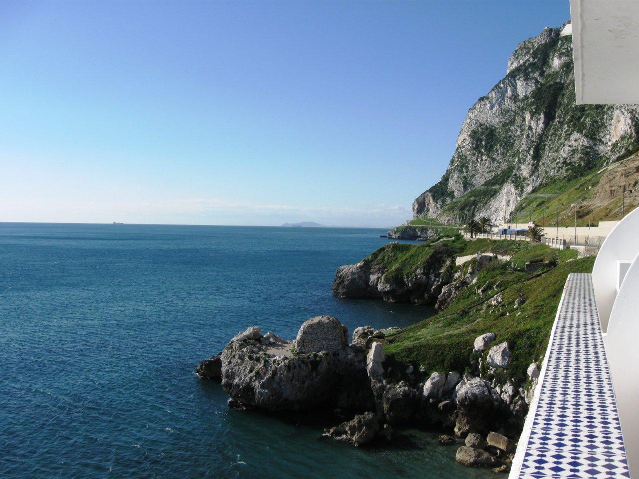 Looking north as we come around to the east side of Gibraltar. “The Rock” is the second pinnacle, in the distance, and the white building lower right is my hotel. Every time I look at this photo, I wonder if I have enough coverage for my home and car.