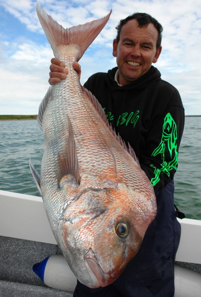 Shaun Furtiere and a positively huge snapper – his website is FULL of pinkies this size. http://www.thinkbigcharters.com.au/