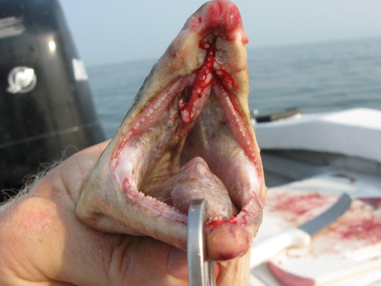 Then it got weird. I have to do weird things to find new species, and deep dropping is one of those things. Deep dropping is miserable work. It starts with the unbridled optimism of loading gobs of bait onto circle hooks, attaching these rigs to two or more pounds of lead, and letting fly. It takes about six minutes for one of these rigs to hit 1000 feet, and about three minutes in, you begin to realize it’s going to take a lot longer than that to reel it up. Most drops do not result in a hookup, which seems grossly unfair considering the amount of work involved.