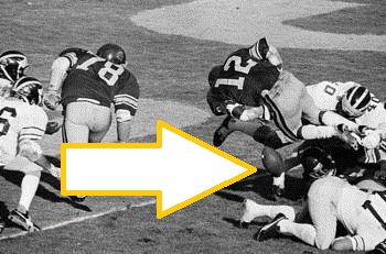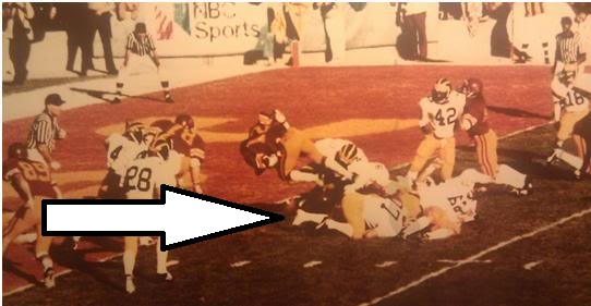 The guy on the right is a stage actor and does an awesome one man show on Groucho Marx. The guy on the left is showing exactly how far Charles White’s knee was from the two yard line.