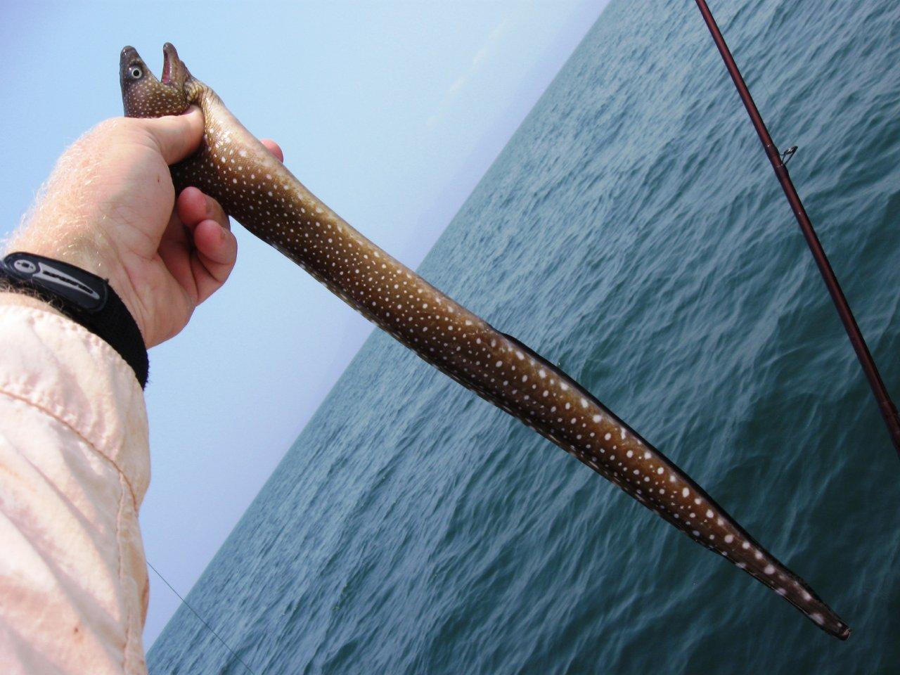 Foolishly, I said “Bar jack, it has a bar on the back.” And Martini said “They both have a bar, but the bar jack’s bar comes all the way onto the lower lobe of the caudal fin and it doesn’t have YELLOW marks like the yellow jack you are holding.” Oops. In retrospect, it was inadvisable to pick this fight with a marine biology student who has been fishing in this area for 20 years, but just as in hockey, I plowed ahead heedless of common sense.